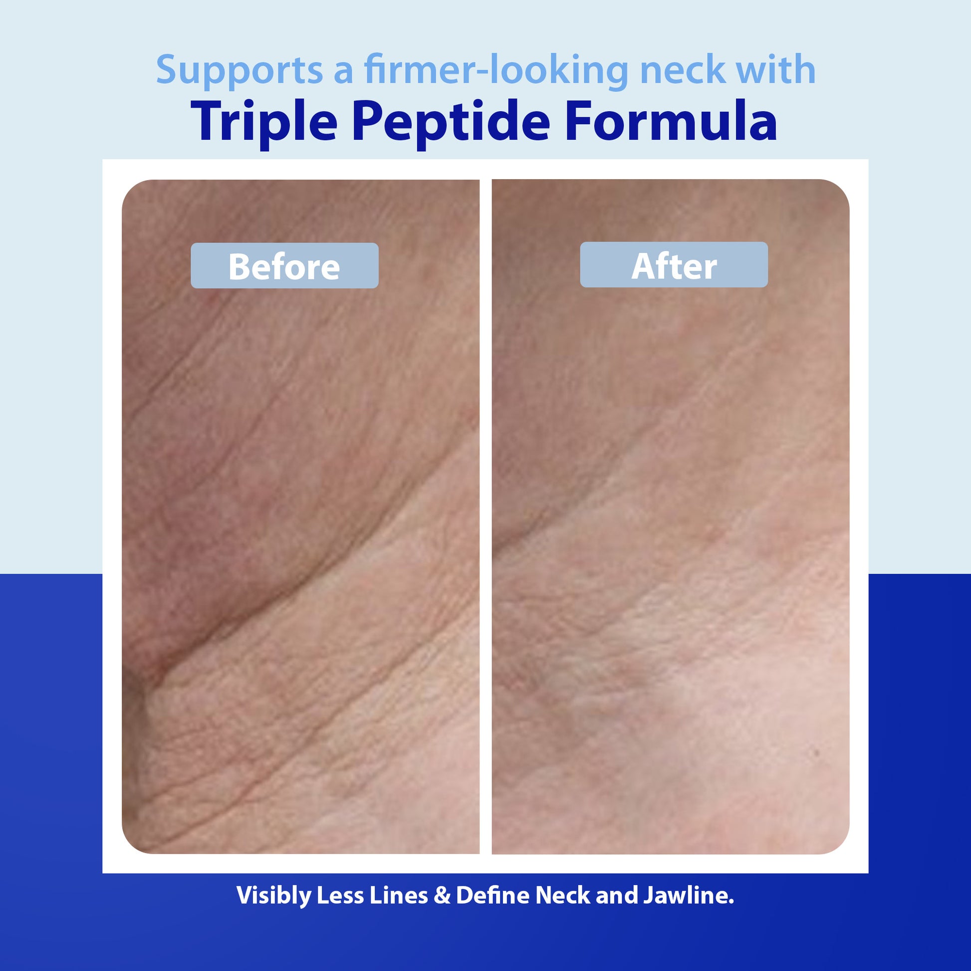 This unique formulation addresses the neck and decollate with breakthrough Triple Strength Peptide technology that delivers three times the amount of peptides as compared to industry standards in order to visibly improve the look of lines, wrinkles, circular lines and even deeper, etched in lines on the neck and décolleté.